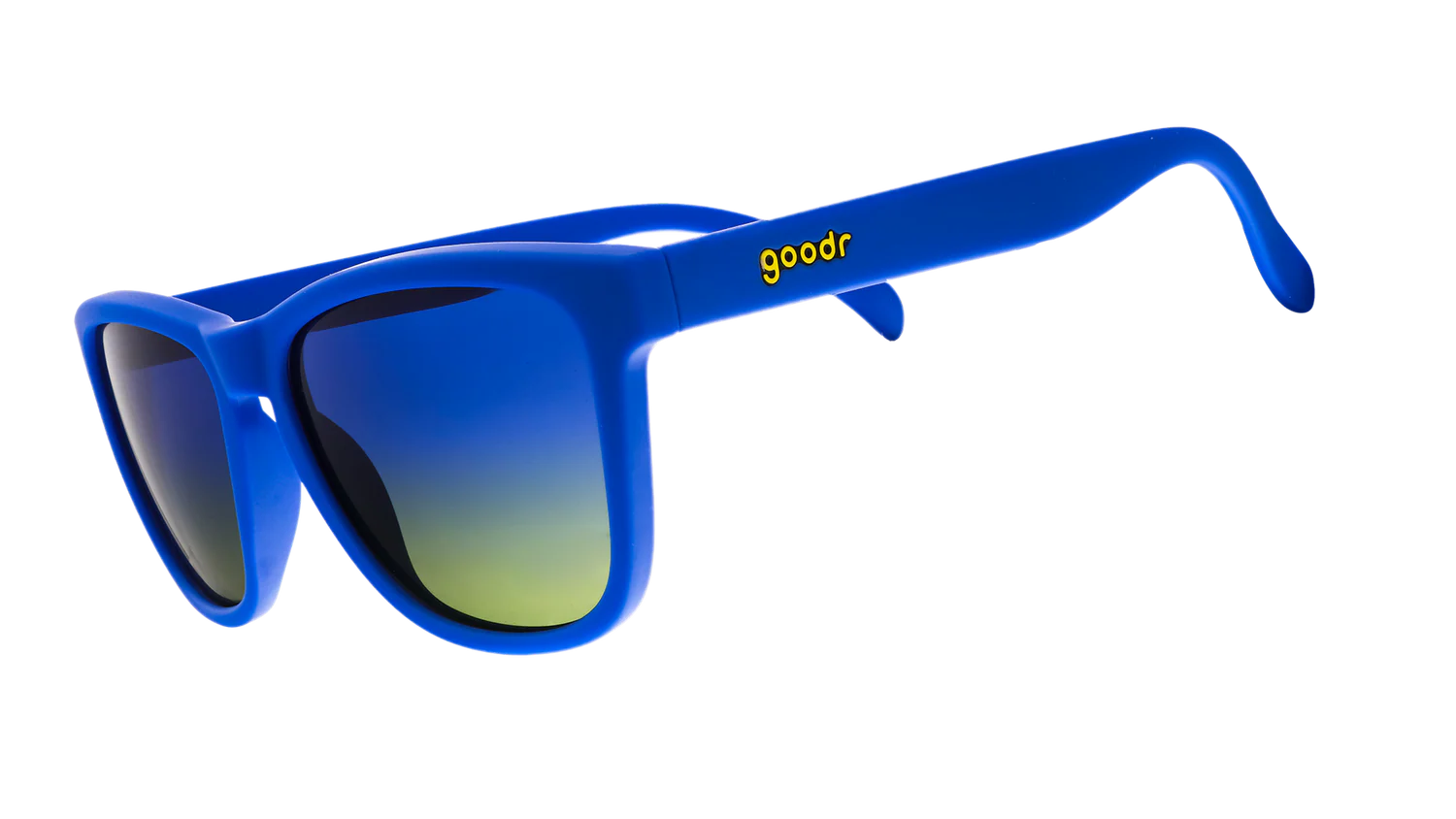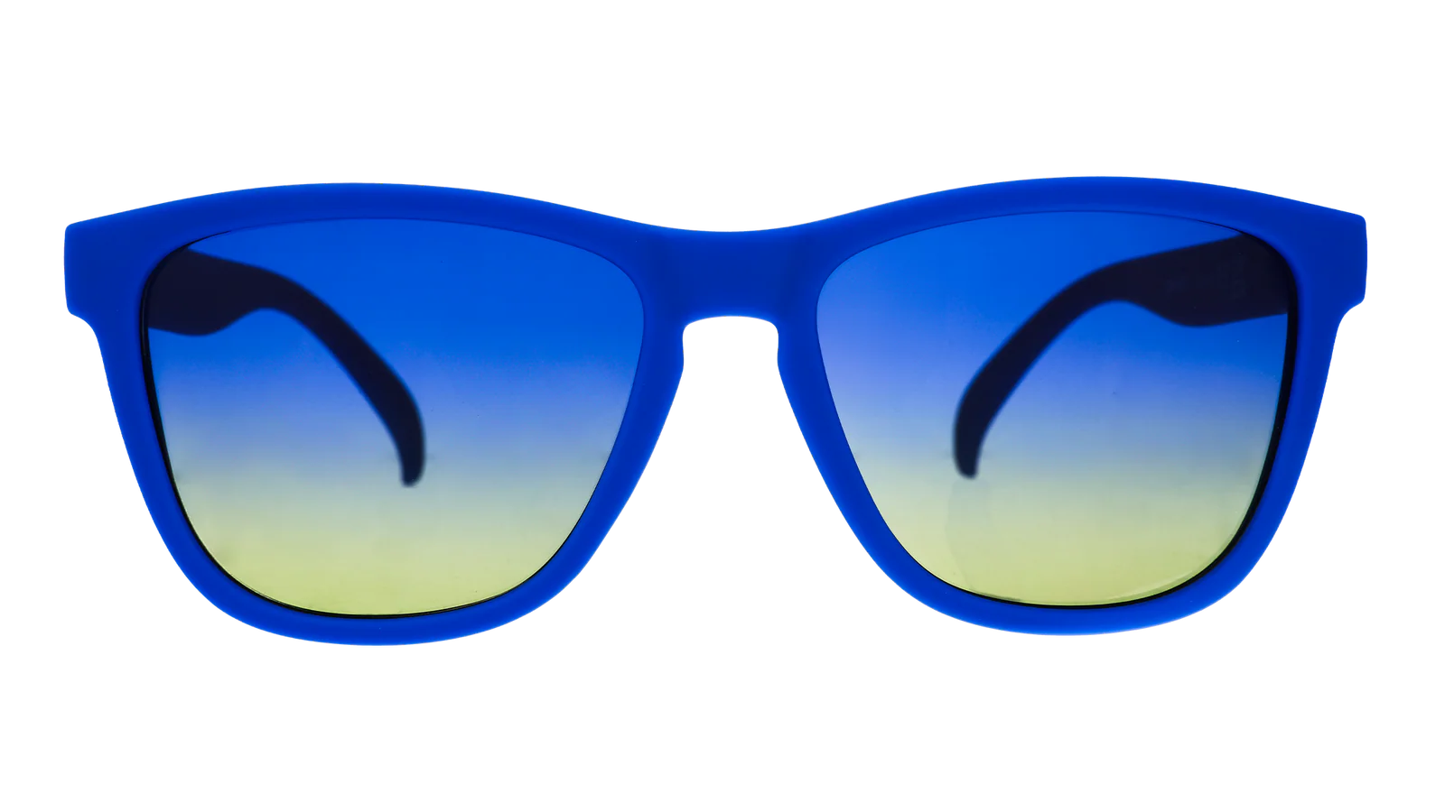 Revenge takes form in these blue OGs featuring blue-yellow ocean lenses. Who knew Blue Lobster’s oceanic wrath could produce such fetching blue shades? Won't slip or bounce on your next run or while evading this sea creature’s fury!!!